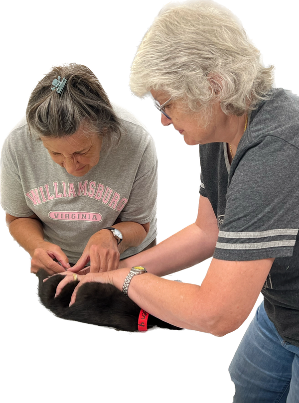 Volunteers enjoy time spent with their patients at July 9, 2023 spay day.